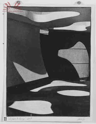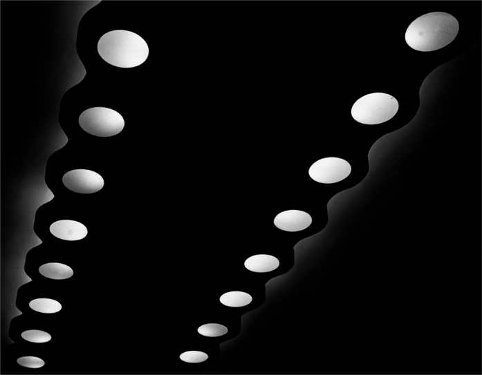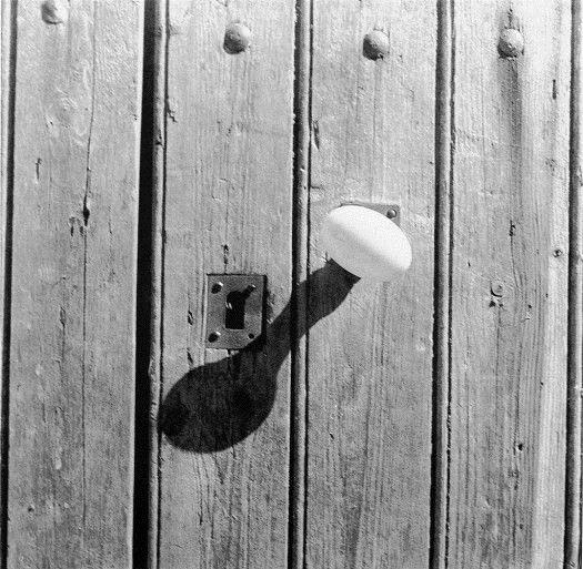 É interessante pensar que os deslocamentos de Geraldo de Barros não acontecem apenas na fotomontagem; suas imagens fotográficas também elevam o pensamento e a reflexão estética no ato fotográfico. A imagem abaixo, uma das fotoformas, é a sombra projetada de uma maçaneta, uma imagem que não caminha nos campos comuns da fotografia como o retrato ou a paisagem, mas que desloca completamente o motivo e o objeto do fazer fotográfico.