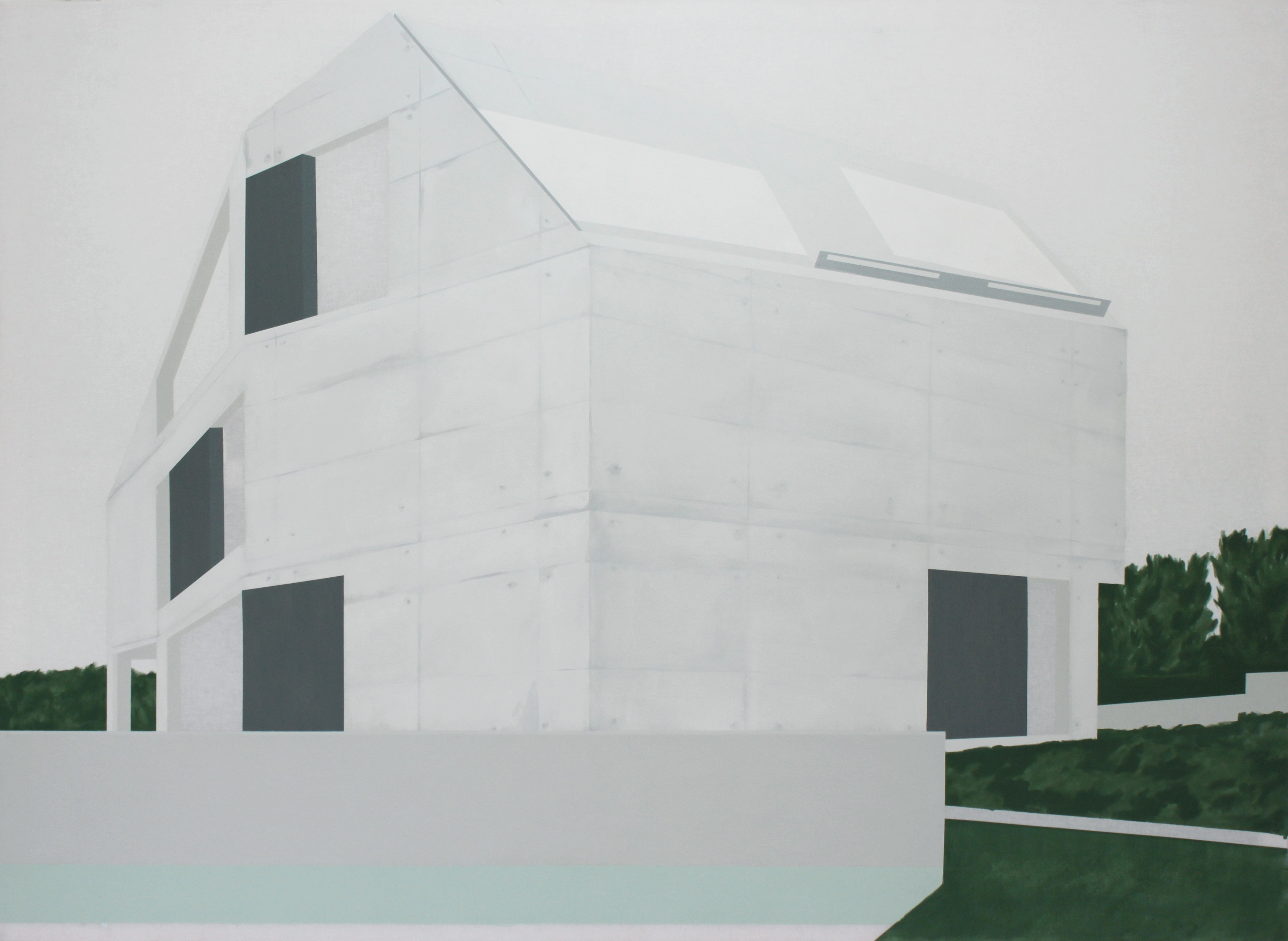 As pinturas expostas dão a impressão de serem superexpostas e suaves, permanecendo tão mínimas que permanecem abertas às nossas próprias reflexões.