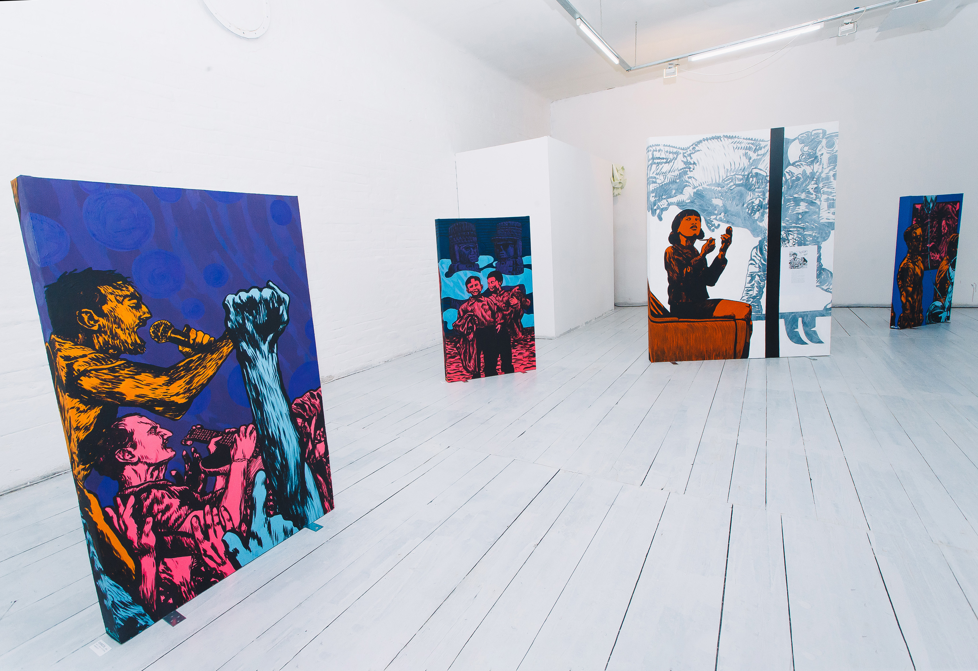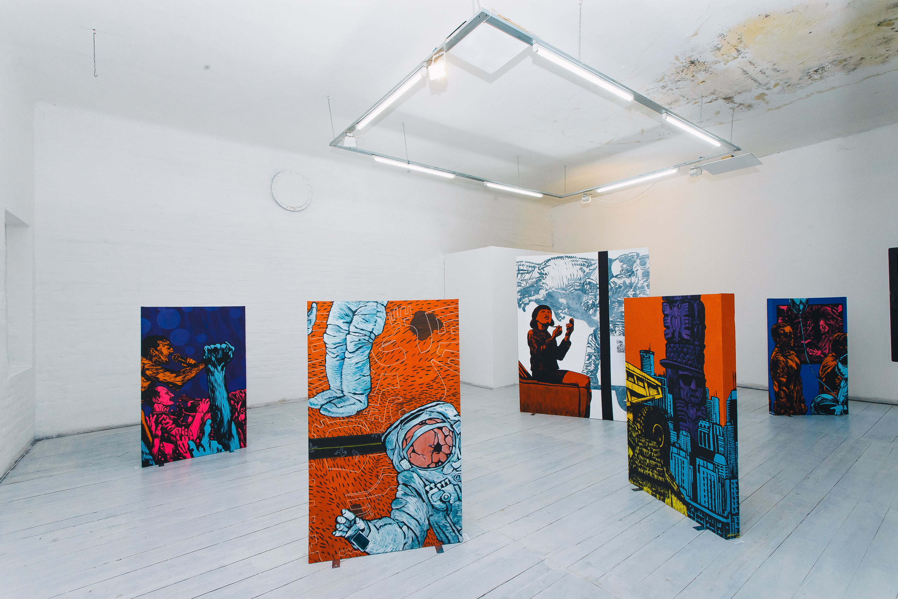 As representações imaginativas sem dúvida exigiram muito esforço e o artista conseguiu uma narrativa expressiva e descritiva. As telas são como peças móveis, dispostas aleatoriamente no espaço. O espectador é convidado a circular entre elas e ver pinturas em ambos os lados. Este não é o resultado de pinturas, mas de objetos.