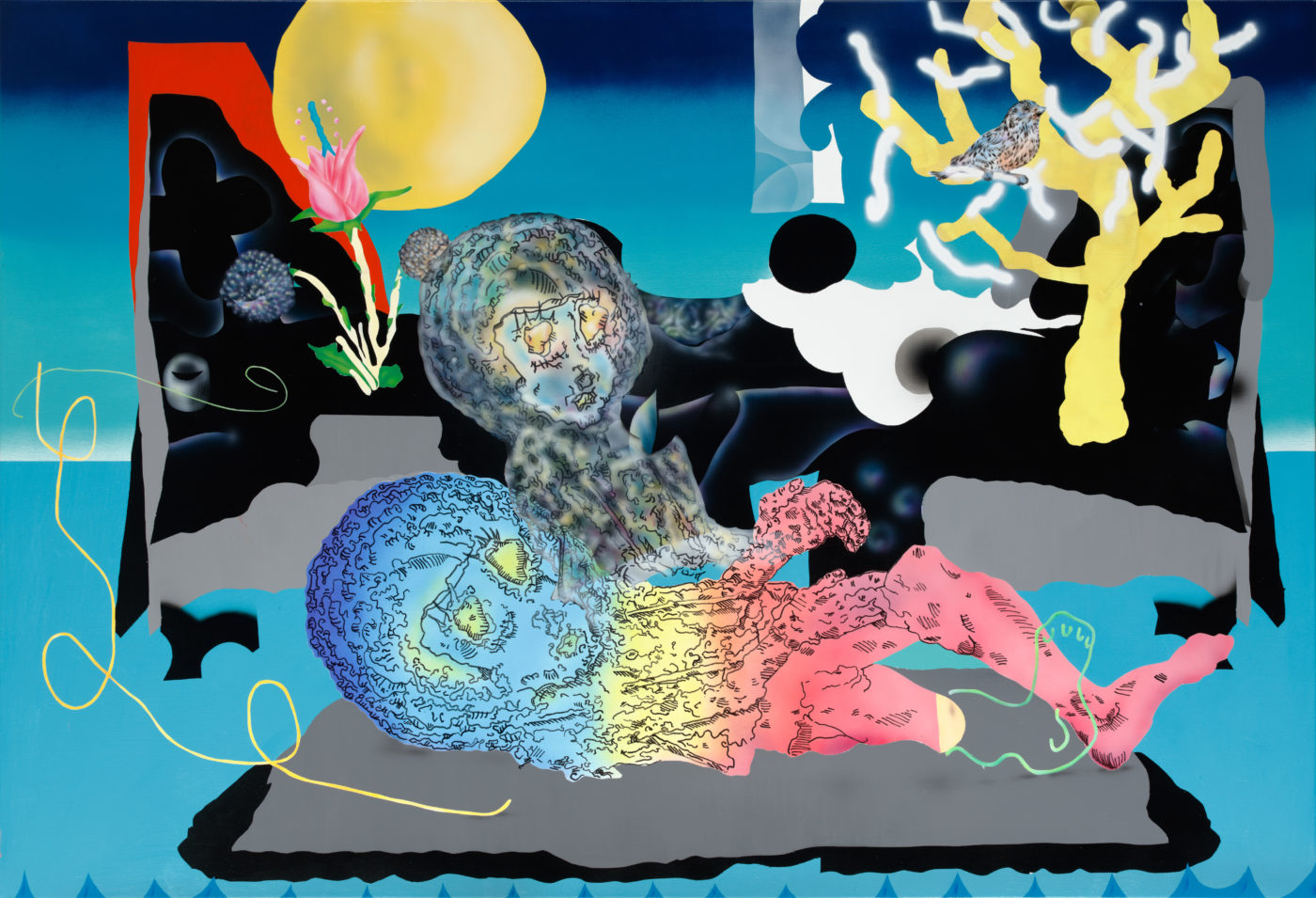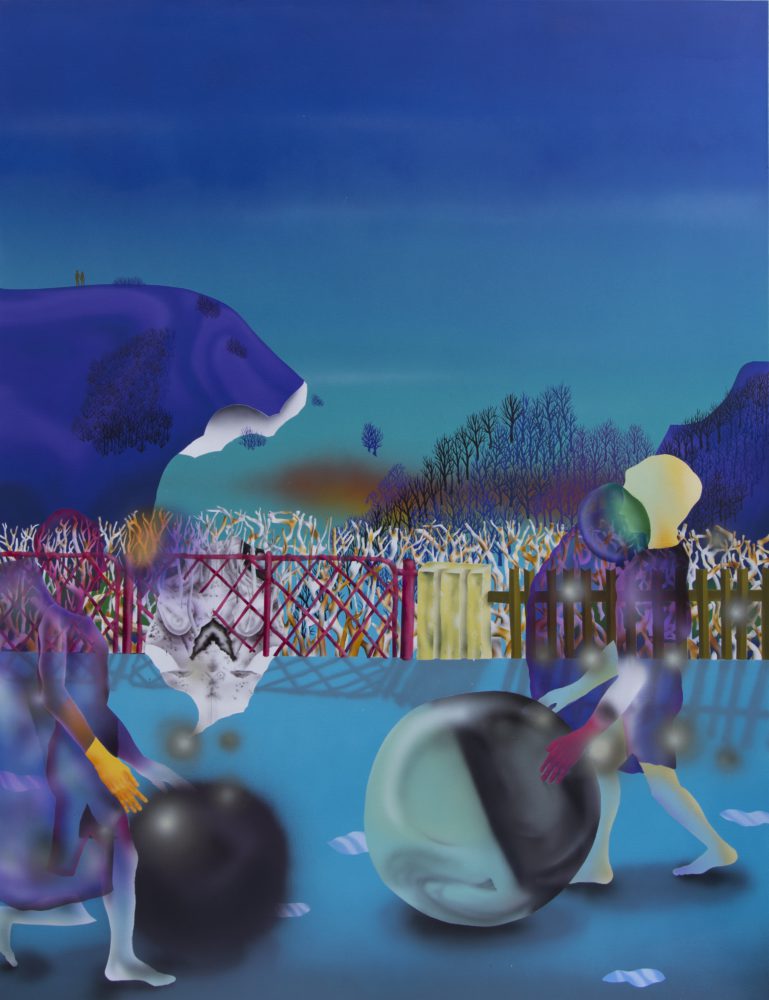 O jovem pintor está interessado nas formas extraordinárias que tomam certas manifestações caracterizadas por um retorno da estatuária antropomórfica, mas sob o preço de estranhas hibridações que interrogam uma identidade.