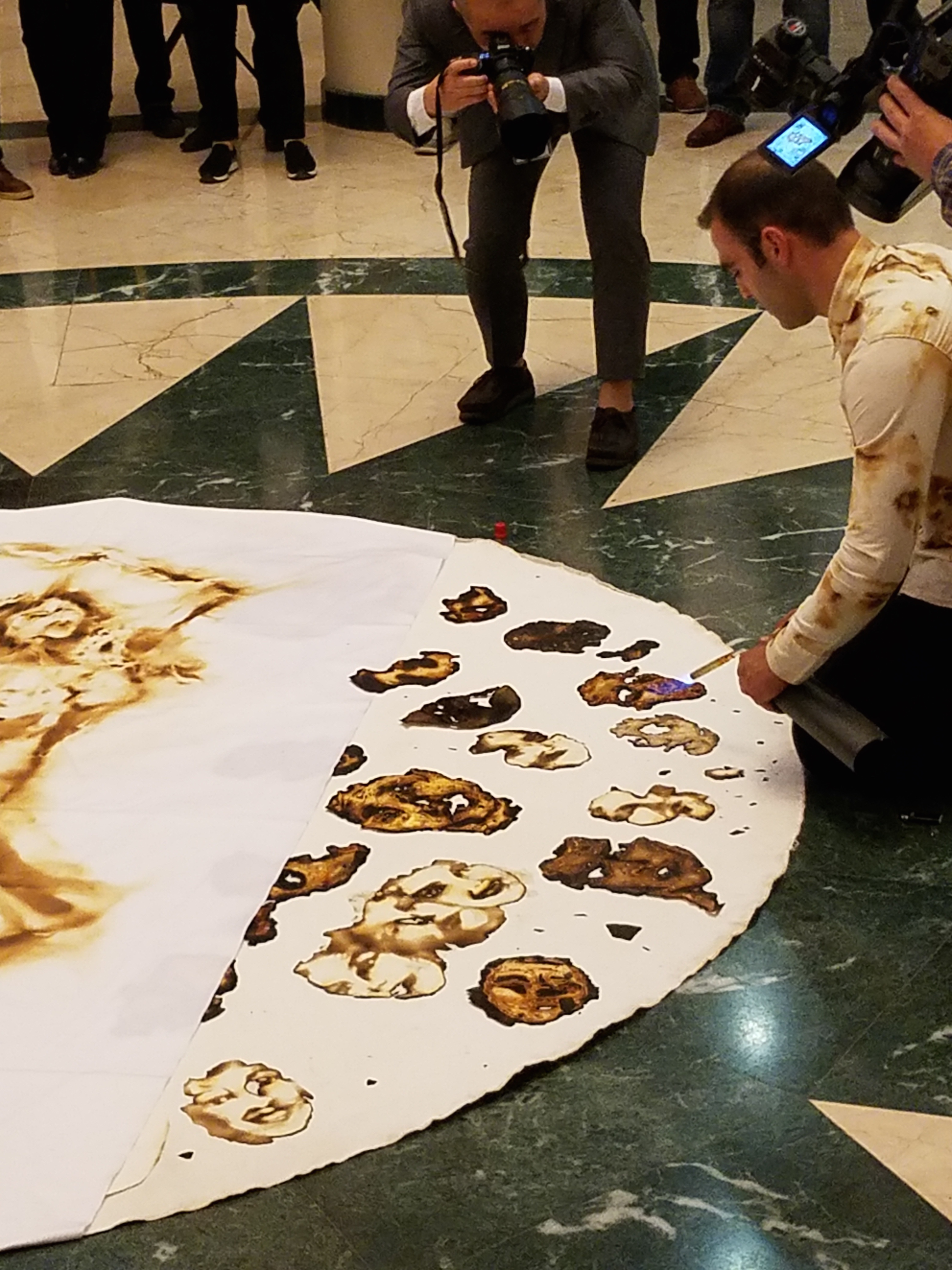 Ele é uma fonte de energia; é um emblema que pontilha a nossa imaginação e desperta vários sentimentos. Em um gesto criativo e mágico, Igor Josifov usa o fogo como ferramenta de marcação. O processo é uma performance. Igor cria trabalhos em papel ondulado com as lendas da criação e destruição. O trabalho de Igor Josifov é uma fonte de fascínio.